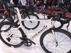 Colnago Concept: Ernesto Colnago calls his new aero bike, introduced at the show, “The combination of pure power and speed”. The original Colnago Concept project was in 1986, Colnago’s first carbon fibre frame developed in collaboration with Enzo Ferrari. The newest Concept was designed in Italy after 41 variations refined from extensive wind tunnel testing, Colnago Concept is manufactured in Taiwan at Giant, one of cycling’s most sophisticated carbon fibre manufacturers. All cables are internally routed and two direct mount brakes are on a frame with clearances of up to 28mm. Colnago also debuted a new aero handlebar and stem with aero spacers. Like all Colnagos, the concept has a ThreadFit82.5 bottom bracket and claimed weight is 990g with a 400g fork. Look for the Colnago Concept in the 2017 in the World Tour with the new Bahrain team.