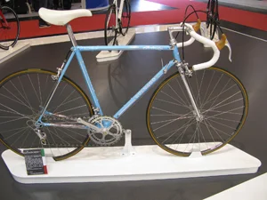 A real retro show stopper at Eurobike was Colnago’s Arabesque, a new frameset shown last year and originally introduced in 1984 for Colnago’s 30th anniversary, the Arabesque was long gone from the Colnago’s catalogue. But then several years ago, a stock of the ornate one-off microfusioned cast lugs made to join the Gilco star shaped custom-drawn DT15V steel tubing and Prescia straight-blade chrome-plated fork were found in the bowels of the Colnago factory and presto! The Arabesque was reborn - at least until the lugs run out, which should account for about 500 frame sets. Updated with a one-inch threadless steerer tube, this retro-modern Colnago still uses an Italian-threaded 70mm bottom bracket. New-Old stock Campagnolo Cinquantanario groupset unfortunately not included.