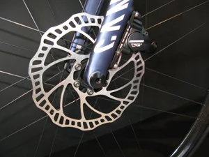 Campagnolo’s disc brakes are still Campy Tech Lab components and only used by pro riders in testing. Rumours say Campagnolo has developed these brakes with Formula and the caliper two-piston caliper with its two-piece body construction has a piston on either side of the rotor. Campy will supposedly offer discs in both flat mount and standard mount design.