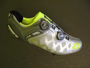 Gaerne G.Stilo +: Italian shoe-maker Gaerne has updated its popular G.Stilo shoe for 2017, with a new lightweight (275 grams for five 42) version called the G.Stilo +. Wear-tested by Team Lotto-Soudal, the Gaerne G.Stilo + has a well-ventilated cutout upper, and features two new new BOA IP-1 closures and an all new injection-molded heel cup. G.Stilo + eliminated the front velcro strap and adds an all-new carbon EPS lightweight full-carbon sole.