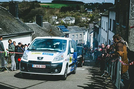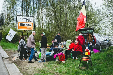 Upon arriving, we were greeted by Belgian cycling fans, and as I got to work capturing some of the atmosphere, we were inundated by offers of wine, beer and food. The caravan soon passed through, until the second incident of the day unfolded: a broken down VIP van, laid on by one of the teams, carrying guests to see the race.