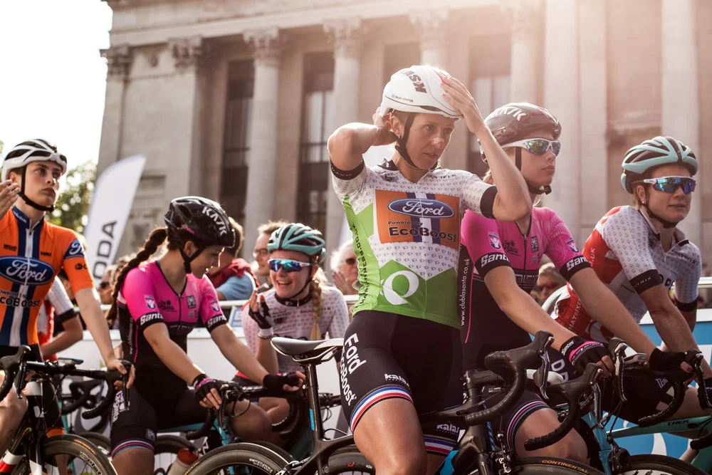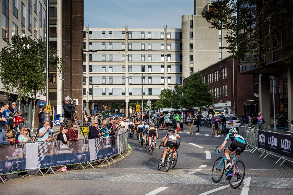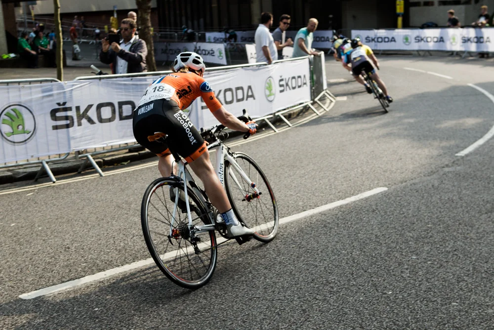 Arriving in Portsmouth, I was blown away by the size of the crowd patiently waiting for racing to commence as the riders warmed up and assessed the course. The atmosphere was already electric as shouts of support echoed through the streets – long before the racing was due to start. The final round offers double points for the riders – a possible spanner in the works for the seriesleaders. Yet as they line up at the start, riders remain calm and composed amid the introductions and elated cheers from track-side supporters.