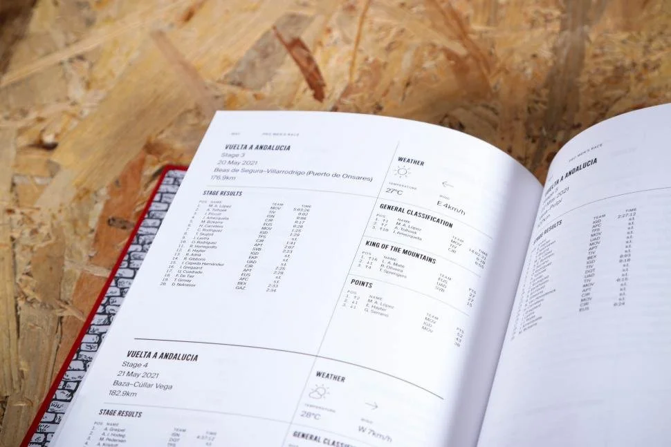 As well as statistics from each race, the book is peppered with contributions - or ‘essays’ from an impressive host of experts; from journalists like Daniel Friebe to champions like Dame Sarah Storry, Tom Pidcock and Tadej Pogačar. It really is the authoritative record and commentary of top-level cycle racing in 2021.